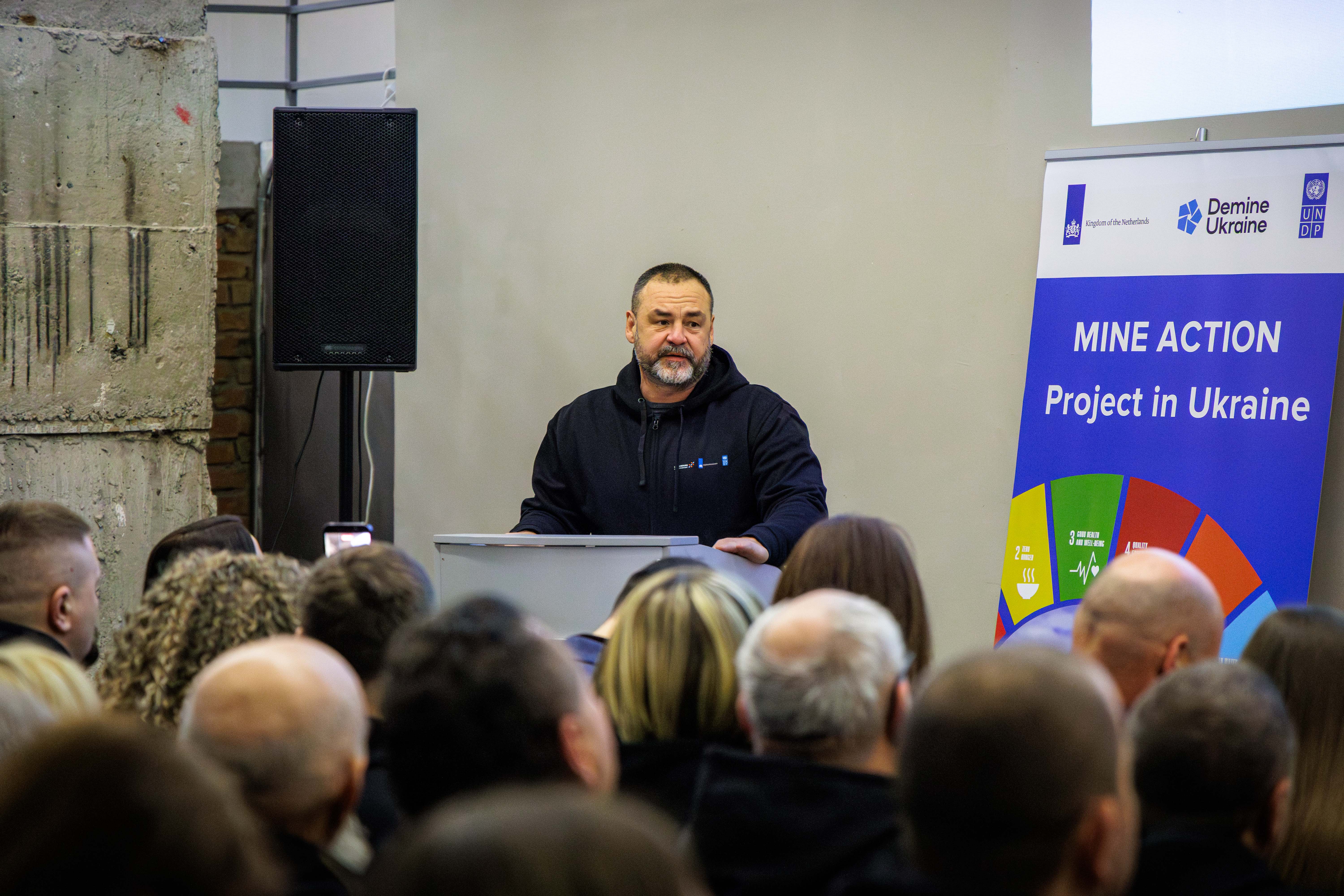 «Нам треба багато фахівців на багато років і ветеранська спільнота на моє особисте переконання є дуже класним підсиленням напрямку протимінної діяльності. Це величезний обсяг роботи різних напрямків — від інформування населення до аналізу великих масивів даних, розмінування, знешкодження. Це важлива робота, яка дозволяє нам робити землю в громадах безпечною і повертати її до продуктивного використання», - наголосив заступник міністра економіки, довкілля та сільського господарства України Ігор Безкаравайний.