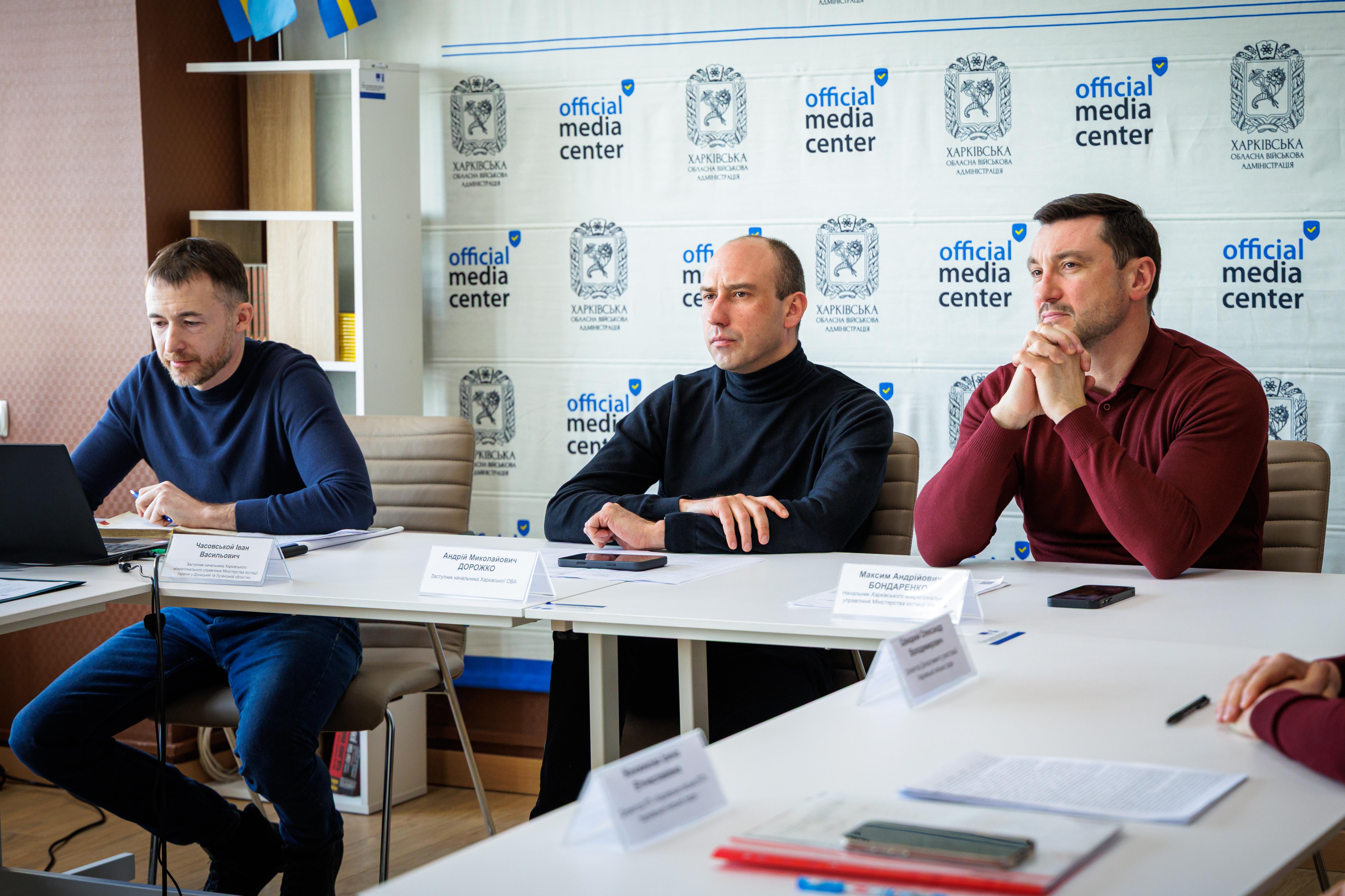 За дорученням начальника Харківської ОВА Олега Синєгубова його заступник Андрій Дорожко долучився до наради за участю начальника Харківського міжрегіонального управління Міністерства юстиції України Максима Бондаренка, представників бюро технічної інвентаризації Харківської, Донецької та Луганської областей і регіональної філії державного підприємства «Національні інформаційні системи».