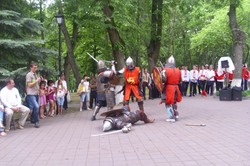 На площі Конституції (поблизу музею) відбувалося театралізоване дійство за участю історичних реконструкторів з демонстрацією старовинних бойових мистецтв, конкурс народної пісні та історична вікторина.